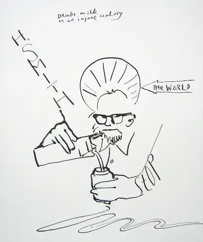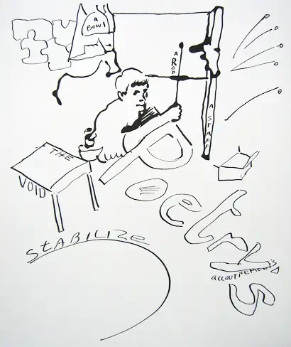 “It’s a thought-provoking work in taking the incomplete project from the already completed photographs, and using the bare bones of the images as a basis for liquid and simple line drawings which distill down to the essence of a photograph—more often than not the person photographed… The book ends up being ‘ghostly’ in the truest sense of the word: the two artists inspired by the incomplete project (incompleteness being one of them most inspiring and proto-creative states) consisting of photographic bones and transforming these bones into subjective ‘words’ which themselves become drawings—responsive to the traced and transmuted images of the photographs, what the words ‘say’ becomes ethereal.”